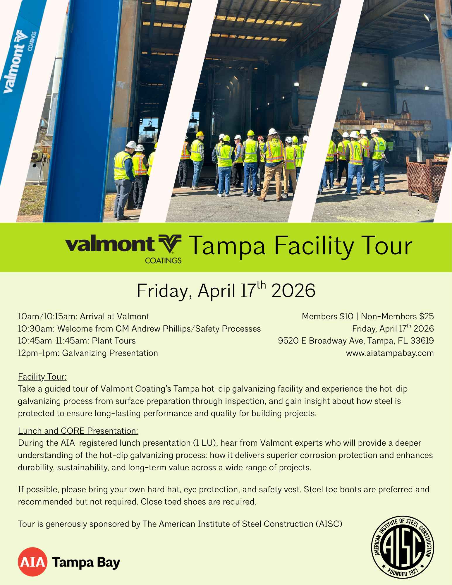 Sponsorship opportunities are available for firms and partners interested in supporting emerging professionals and connecting with Tampa Bay’s design community.