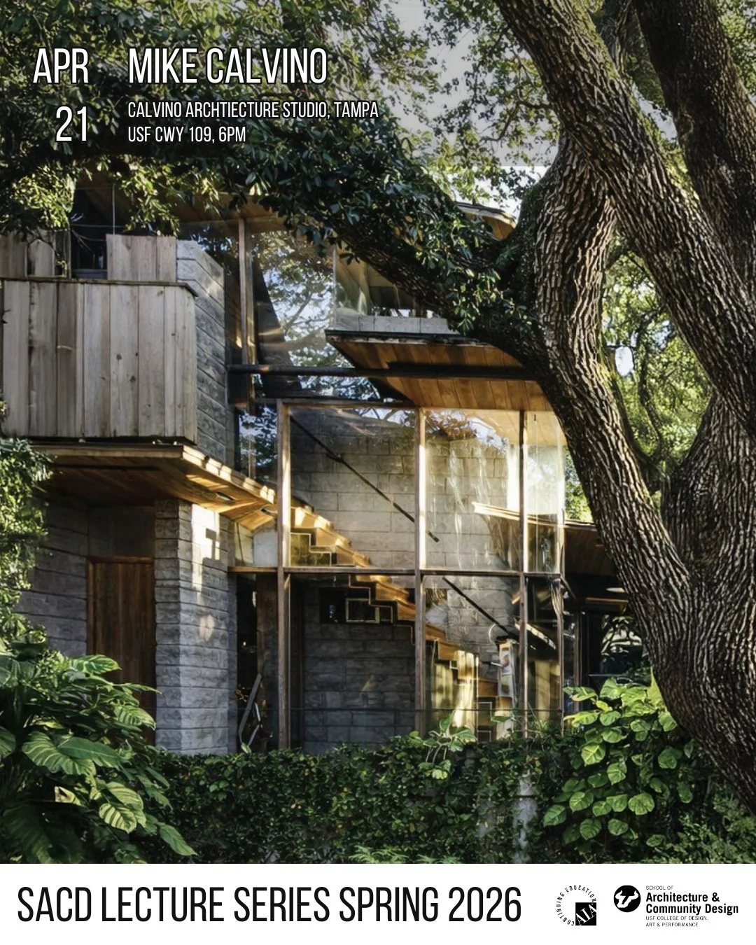 We’re excited to welcome an outstanding group of speakers whose work spans fabrication, research, practice, and the broader cultural forces shaping the built environment. Each event is open to students, faculty, and the wider community, and we hope you’ll be able to attend. *Each lecture will meet at USF CWY 109 at 6PM