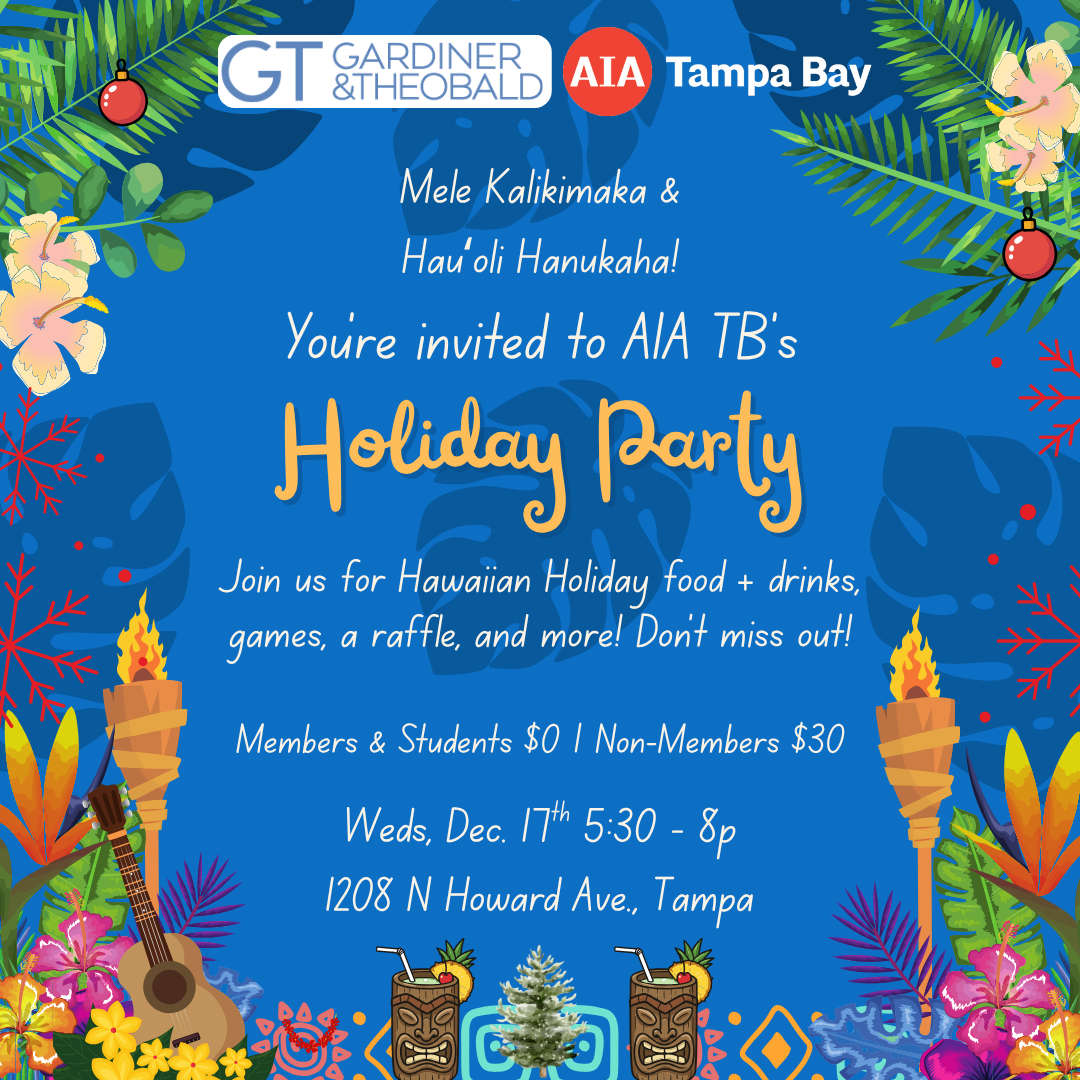 Join AIA Tampa Bay and Gardiner & Theobald for a festive evening of holiday cheer, Hawaiian-inspired delights, and creative fun! Celebrate the season with us at the Center for Architecture and Design.